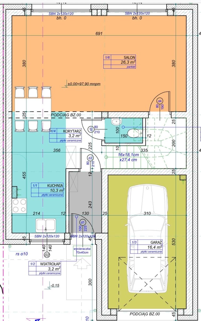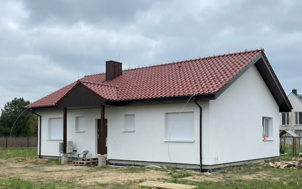 – Elewacja ocieplona styropianem i wykończona tynkiem silikonowym
